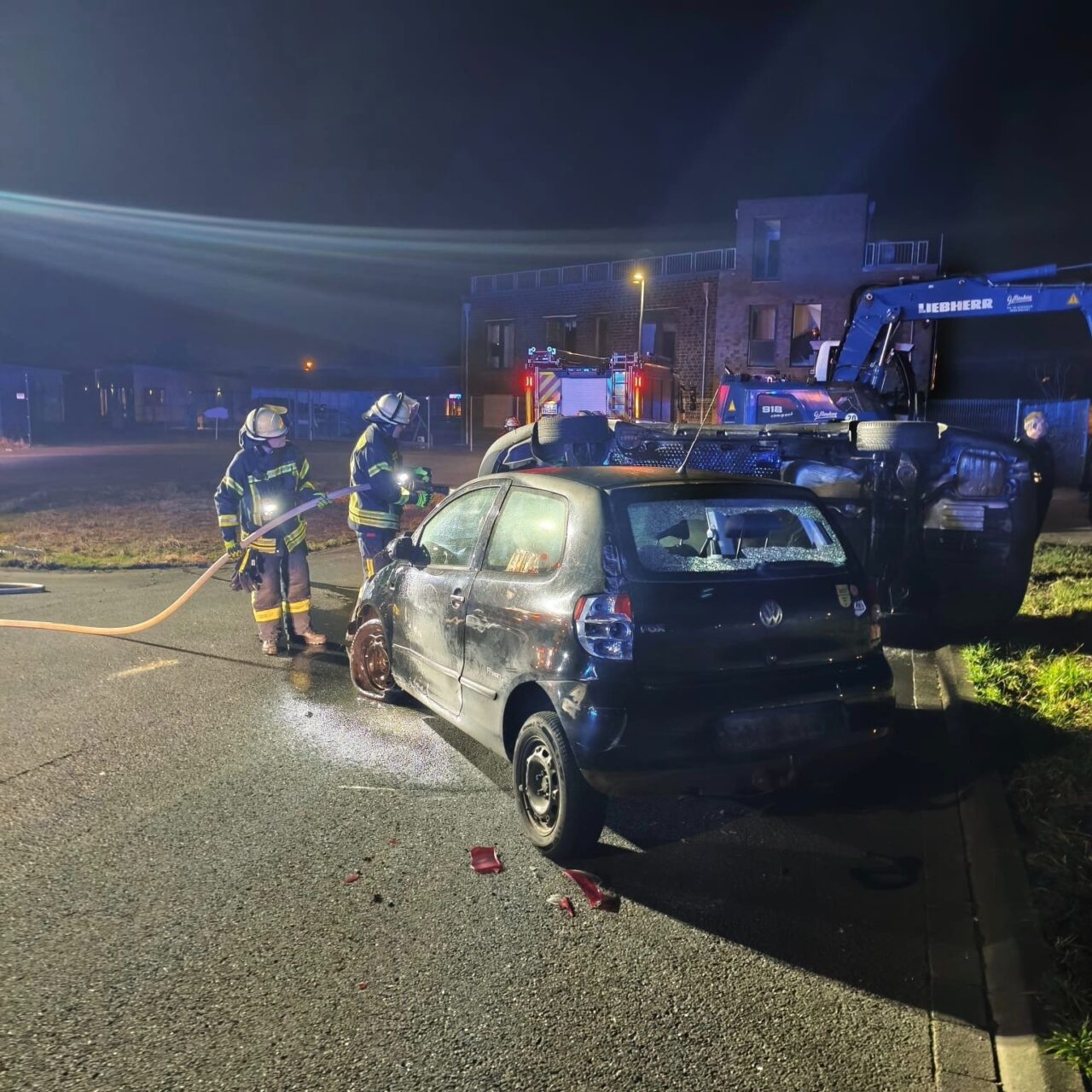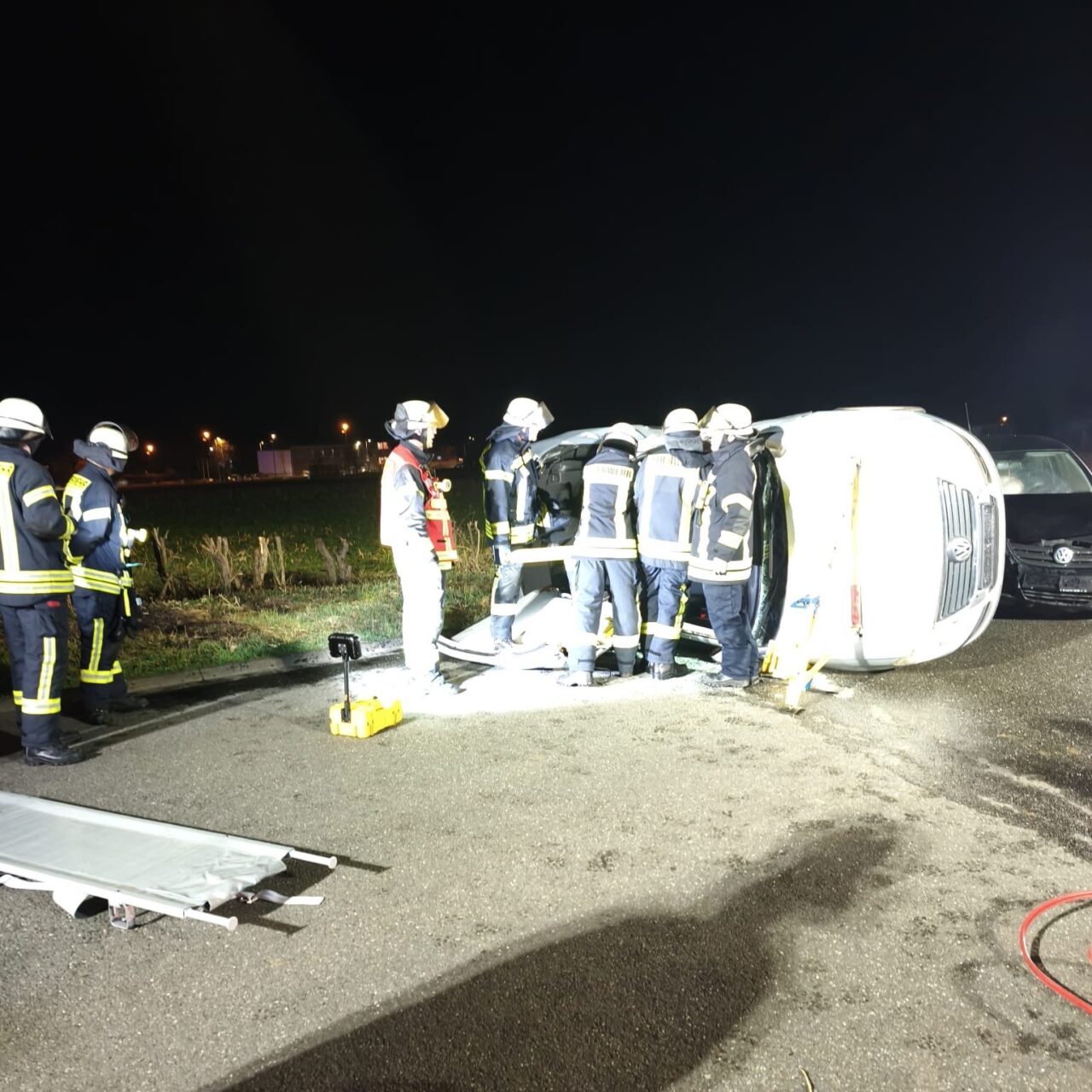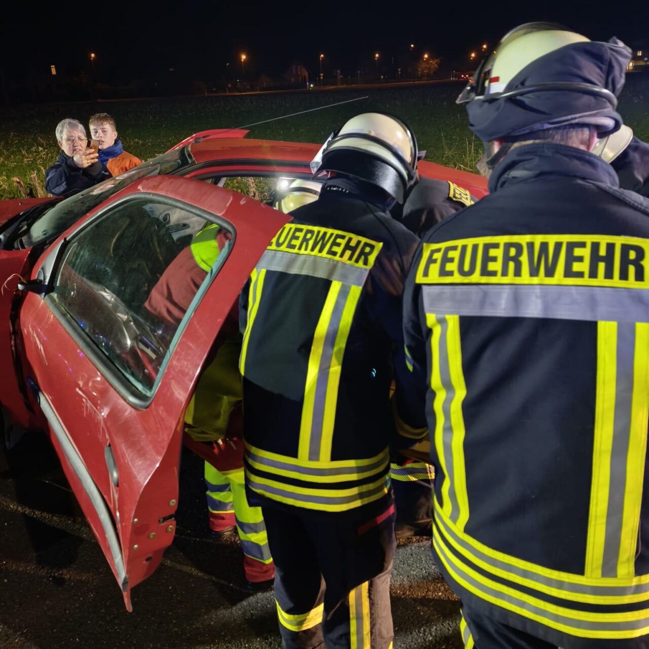 Mit dem Stichwort „H3Y- P-klemmt“ wurden wir gemeinsam mit der Löscheinheit Dingden, dem ELW der Löscheinheit Brünen und dem DRK Dingden zum Weikenrott alarmiert. Vor Ort fanden wir bei der Erkundung einen Verkehrsunfall mit fünf beteiligten Fahrzeugen vor. In drei Pkws waren teilweise mehrere Personen eingeklemmt. Ein weiterer Pkw brannte. Auch ein Bagger war an dem Unfall beteiligt. Somit wurden mehrere Einsatzabschnitte gebildet, sodass die Absicherung und das Ausleuchten der Einsatzstelle, die Versorgung und Betreuung der Betroffenen Personen sowie der Löschangriff parallel abgearbeitet werden konnten. Nachdem die Fahrzeuge gesichert worden waren, konnten wir zudem ebenfalls parallel mit der technischen Rettung der eingeklemmten Personen beginnen. Ebenso wurden auslaufende Betriebsstoffe abgebunden und die Fahrbahn gereinigt. Über den ELW wurden zusätzliche Einheiten des Rettungsdienstes unter dem Stichwort „Massenanfall von Verletzten, kurz MANV“ nachgefordert.